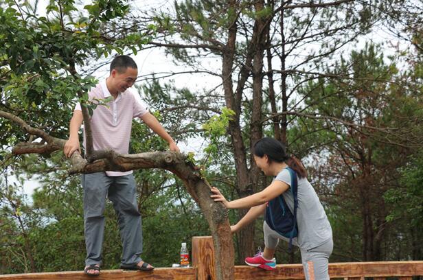 我们全员登上笔架山顶,一齐欣赏万绿湖的美丽秀色,